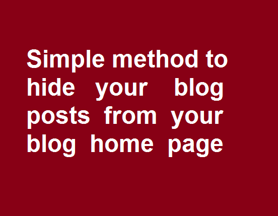 HTML Editing-How to hide one or more Posts from blogger blog Home page- Hiding some of the post of their blog form their home page is a common practice among bloggers. It may be due to the fact that they think the post has lost its relevancy or for some other reason. Whatever the reason may be but blogger often hide some of their post from their home page. There are various method of hiding the posts from the home page. I found one such method on a blog while surfing. The procedure given there was correct but I think I have one more easy procedure. Here is the procedure-